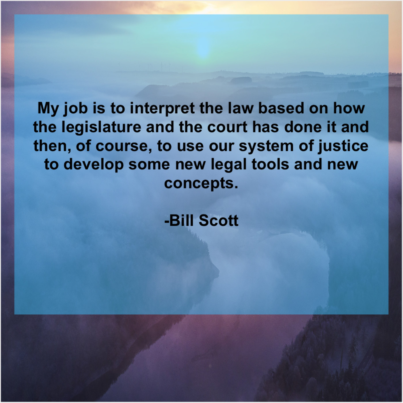 Bill Scott Bill Scott – My job is to interpret… August 5, 2019 admin “My job is to interpret the law based on how the legislature and the court has done it and then, of course, to use our system of justice to develop some new legal tools and new concepts.”-Bill Scott