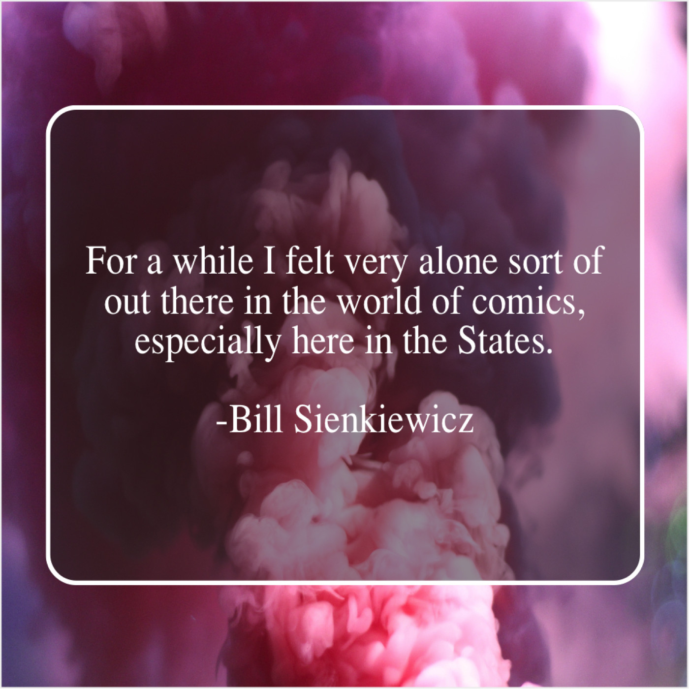 Bill Sienkiewicz Bill Sienkiewicz – For a while I felt… May 5, 2019 admin “For a while I felt very alone sort of out there in the world of comics, especially here in the States.”-Bill Sienkiewicz