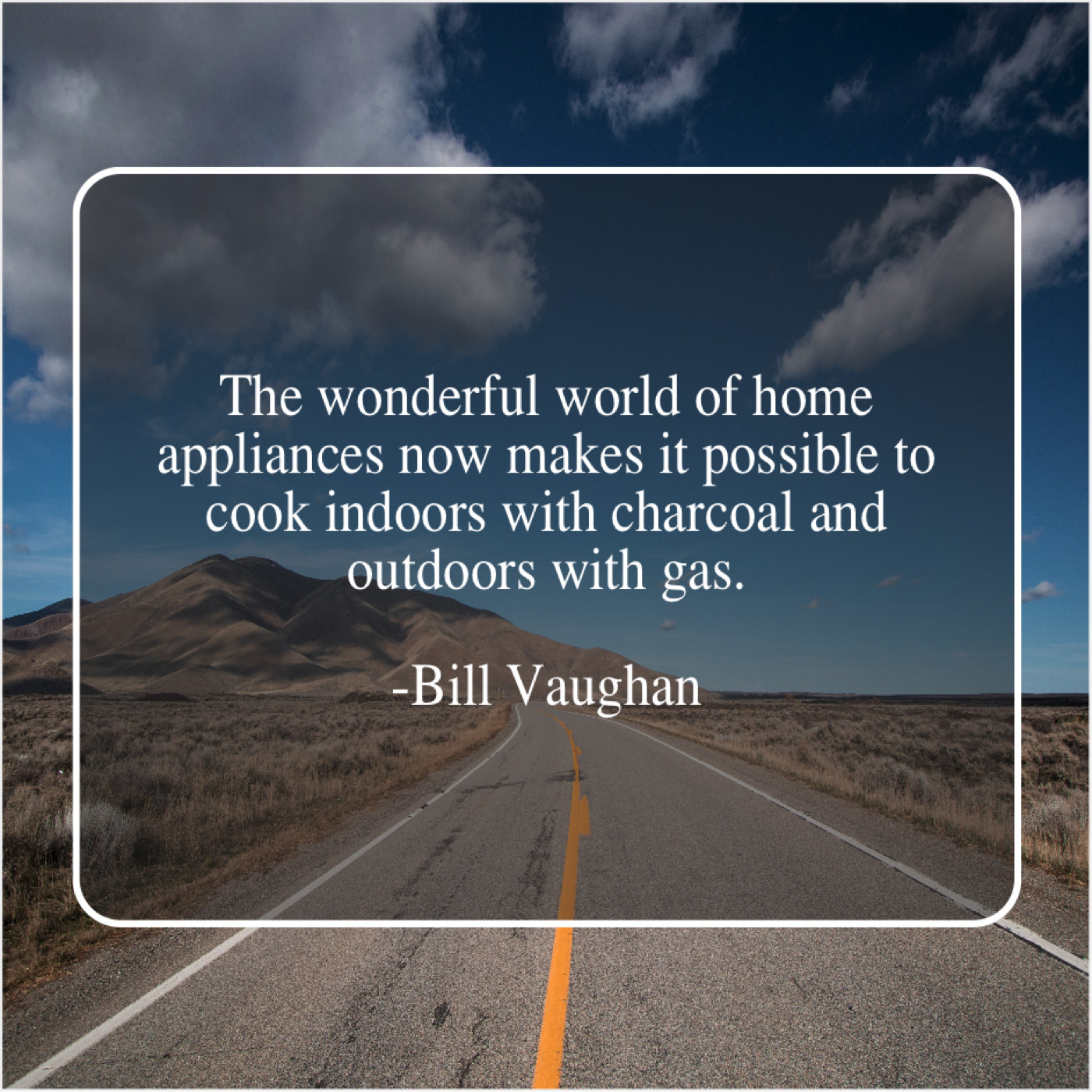 Bill Vaughan Bill Vaughan – The wonderful world of home… April 21, 2019 admin “The wonderful world of home appliances now makes it possible to cook indoors with charcoal and outdoors with gas.”-Bill Vaughan