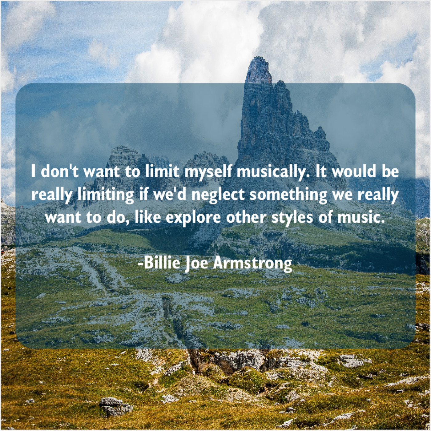 Billie Joe Armstrong Billie Joe Armstrong – I don’t want to limit… August 3, 2019 admin “I don’t want to limit myself musically. It would be really limiting if we’d neglect something we really want to do, like explore other styles of music.”-Billie Joe Armstrong