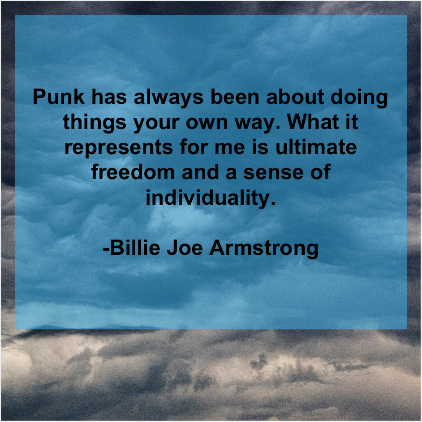 Billie Joe Armstrong Billie Joe Armstrong – Punk has always been about… June 25, 2019 admin “Punk has always been about doing things your own way. What it represents for me is ultimate freedom and a sense of individuality.”-Billie Joe Armstrong