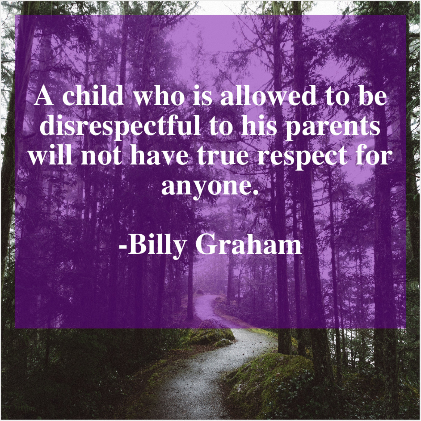 Billy Graham Billy Graham – A child who is allowed… February 22, 2019 admin “A child who is allowed to be disrespectful to his parents will not have true respect for anyone.”-Billy Graham