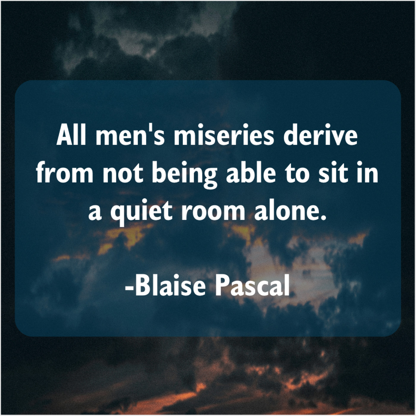 Blaise Pascal Blaise Pascal – All men’s miseries derive from… July 4, 2019 admin “All men’s miseries derive from not being able to sit in a quiet room alone.”-Blaise Pascal