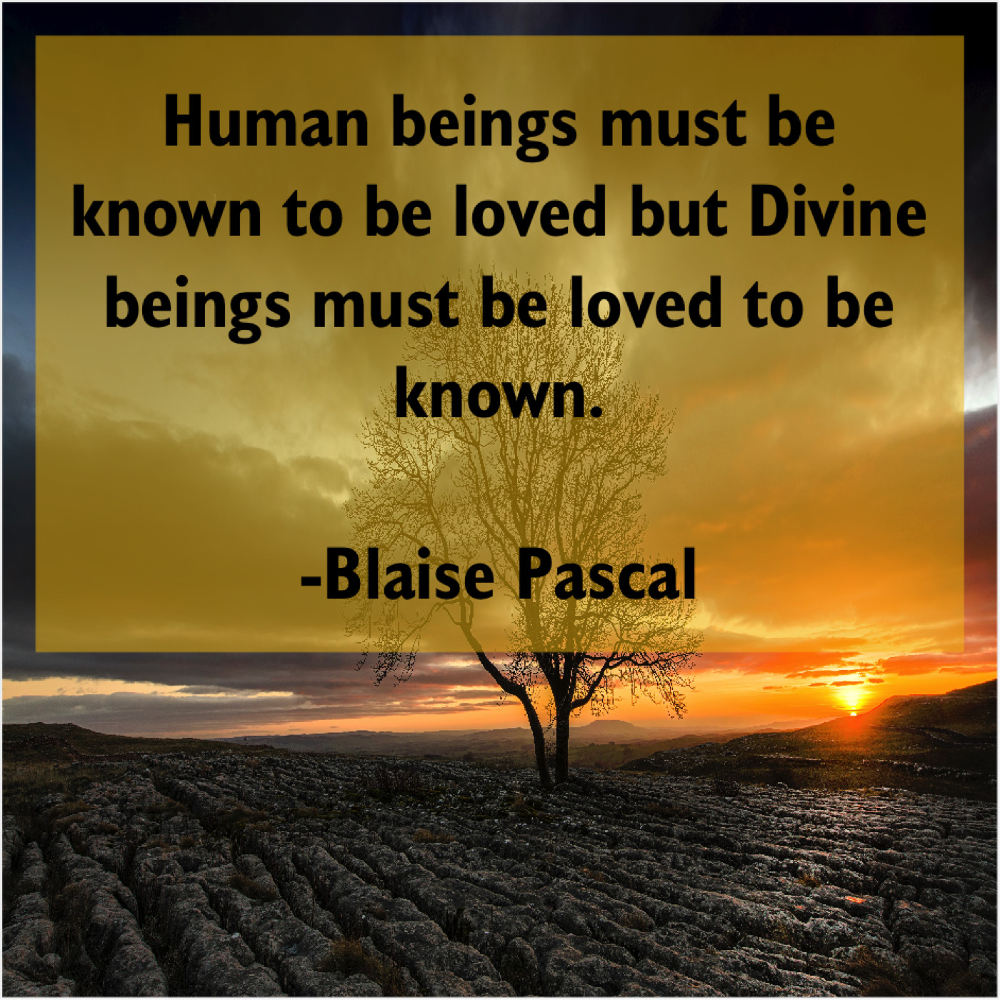 Blaise Pascal Blaise Pascal – Human beings must be known… September 28, 2019 admin “Human beings must be known to be loved but Divine beings must be loved to be known.”-Blaise Pascal
