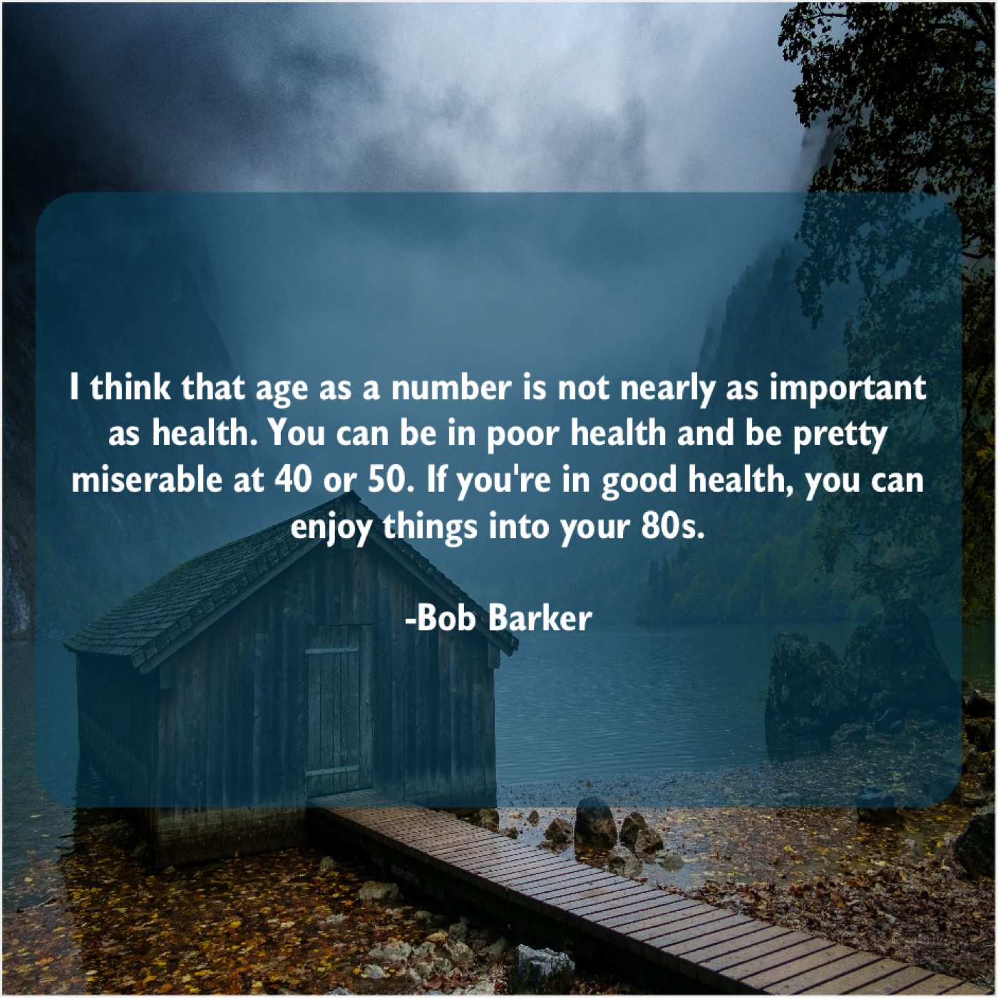 Bob Barker Bob Barker – I think that age as… September 18, 2019 admin “I think that age as a number is not nearly as important as health. You can be in poor health and be pretty miserable at 40 or 50. If you’re in good health, you can enjoy things into your 80s.”-Bob Barker