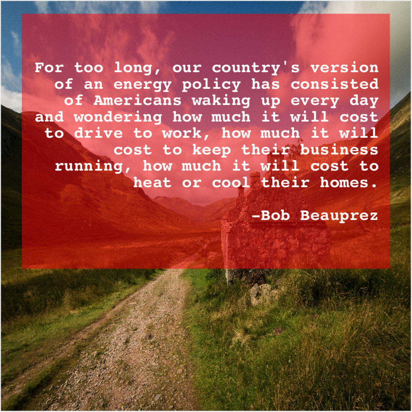 “For too long, our country’s version of an energy policy has consisted of Americans waking up every day and wondering how much it will cost to drive to work, how much it will cost to keep their business running, how much it will cost to heat or cool their homes.”