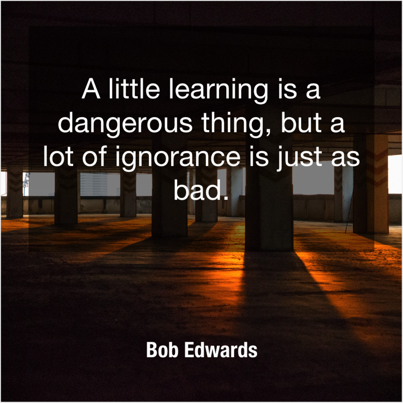 Bob Edwards Bob Edwards – A little learning is a… May 28, 2019 admin “A little learning is a dangerous thing, but a lot of ignorance is just as bad.”-Bob Edwards