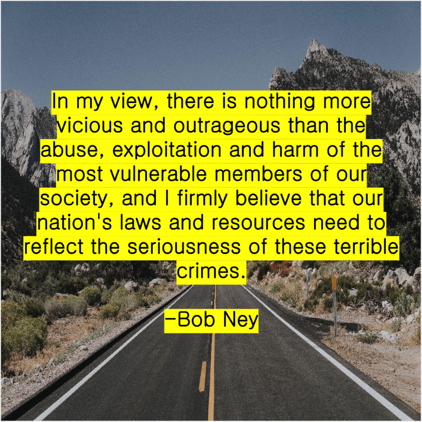 “In my view, there is nothing more vicious and outrageous than the abuse, exploitation and harm of the most vulnerable members of our society, and I firmly believe that our nation’s laws and resources need to reflect the seriousness of these terrible crimes.”