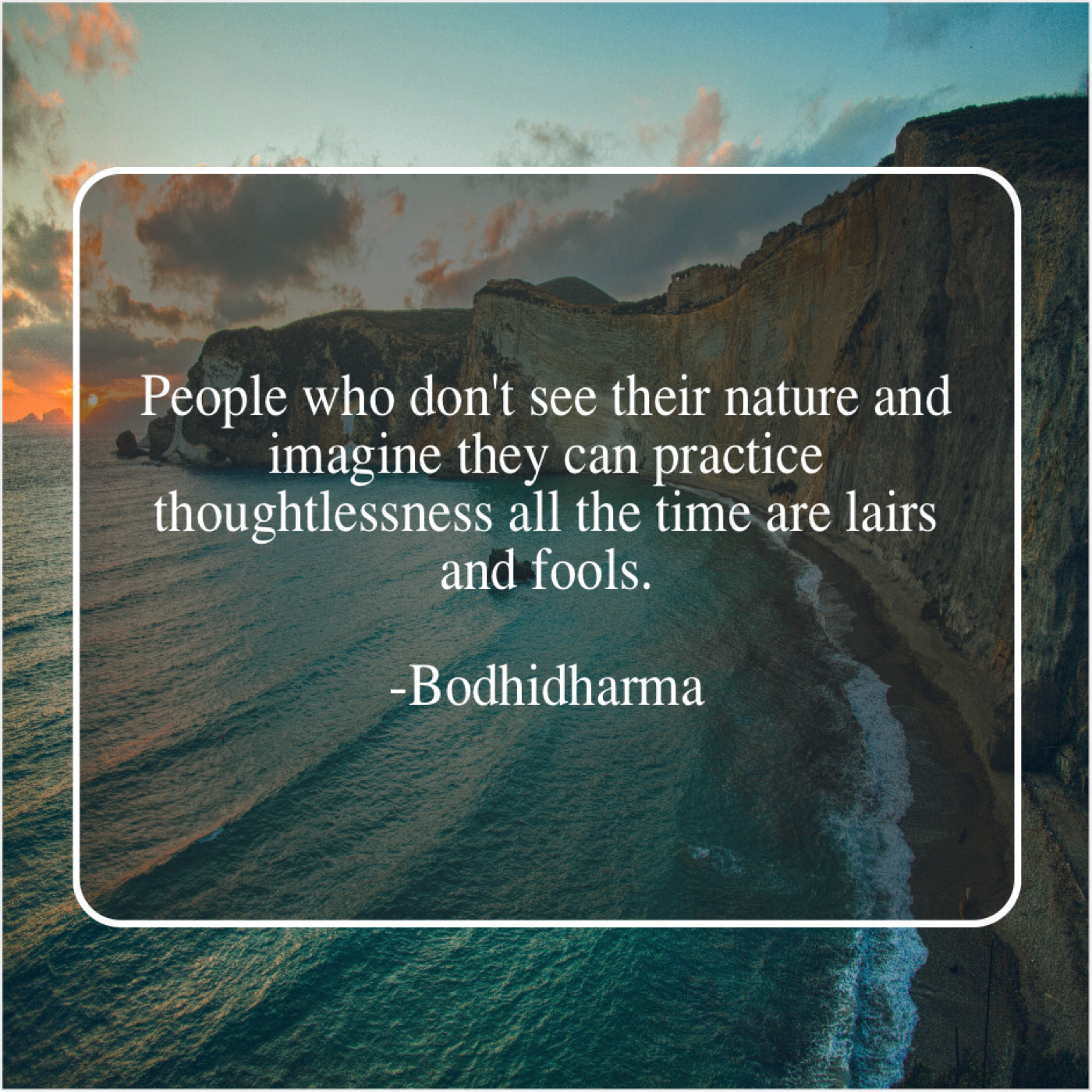 Bodhidharma Bodhidharma – People who don’t see their… June 10, 2019 admin “People who don’t see their nature and imagine they can practice thoughtlessness all the time are lairs and fools.”-Bodhidharma