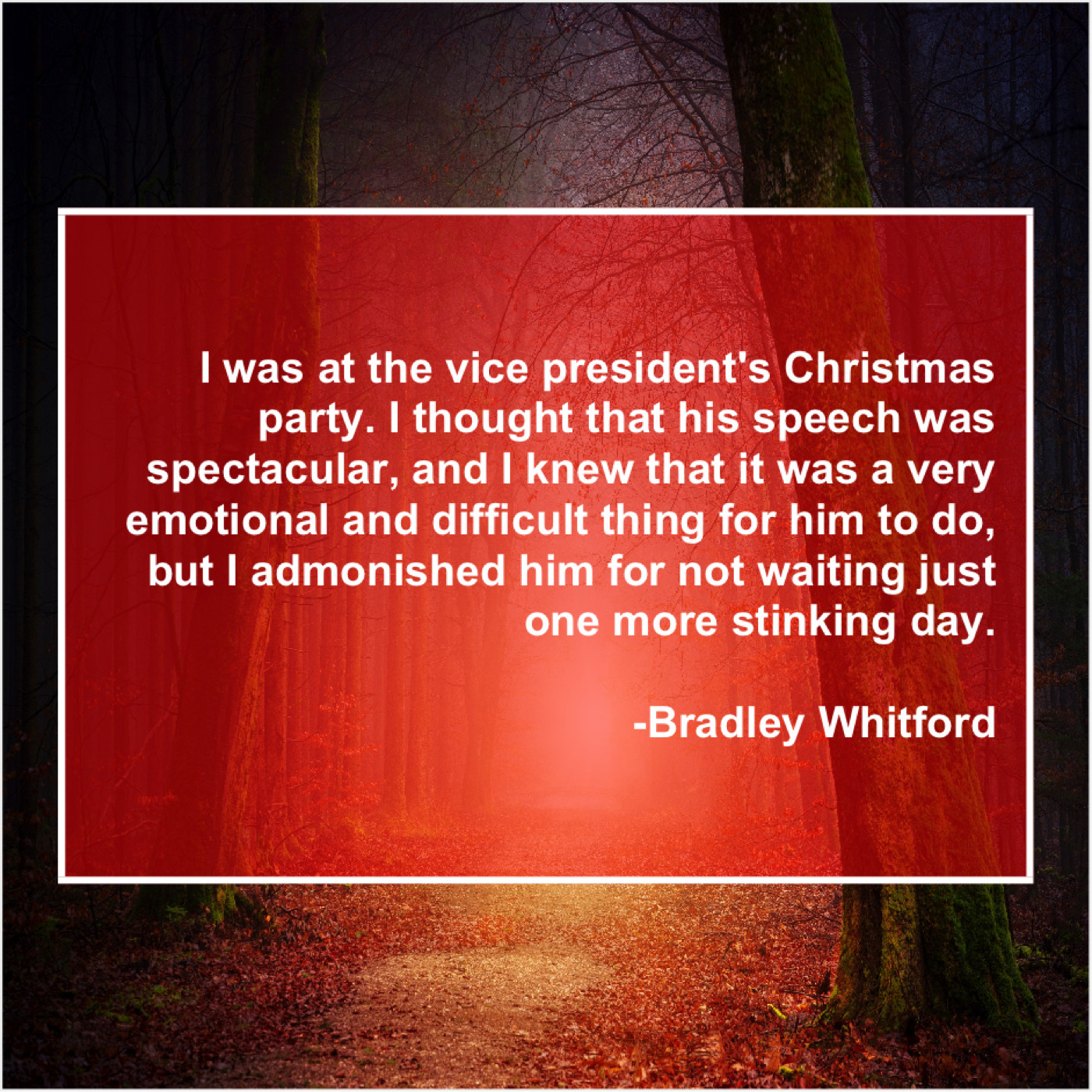 Bradley Whitford Bradley Whitford – I was at the vice… September 26, 2019 admin “I was at the vice president’s Christmas party. I thought that his speech was spectacular, and I knew that it was a very emotional and difficult thing for him to do, but I admonished him for not waiting just one more stinking day.”-Bradley Whitford