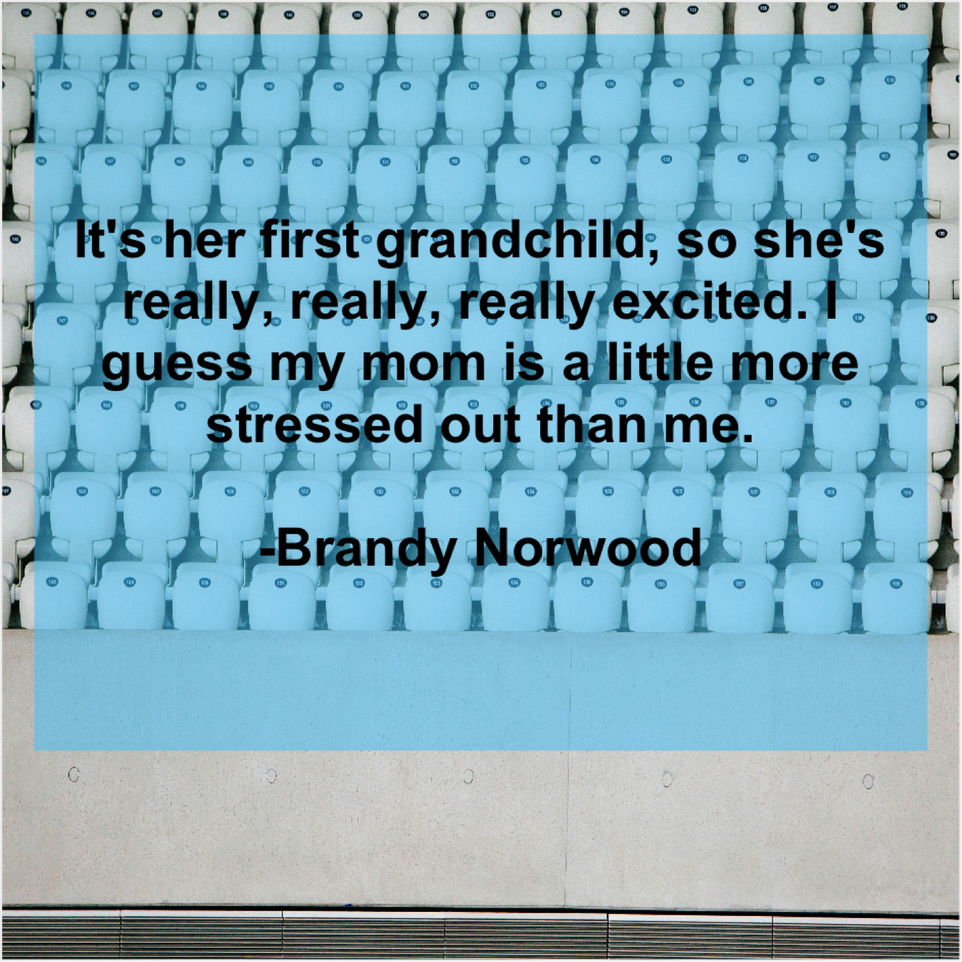 Brandy Norwood Brandy Norwood – It’s her first grandchild, so… February 5, 2019 admin “It’s her first grandchild, so she’s really, really, really excited. I guess my mom is a little more stressed out than me.”-Brandy Norwood