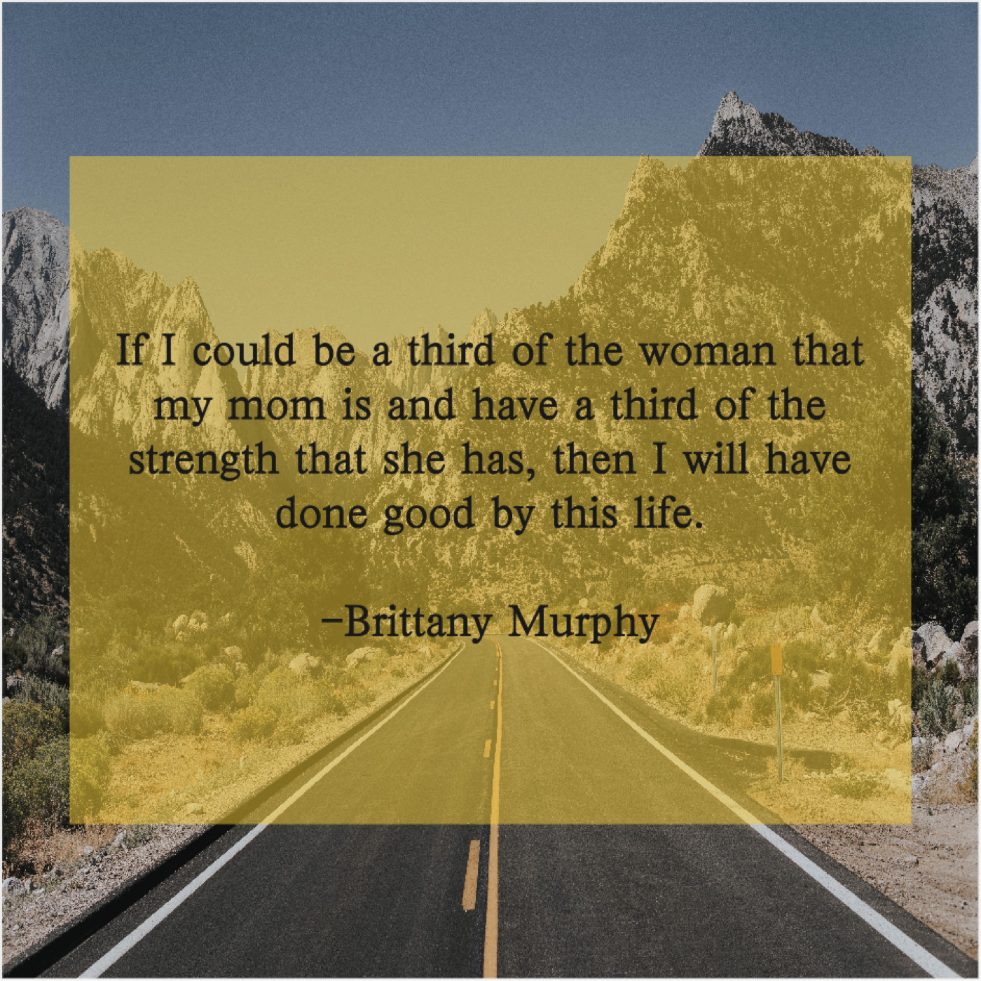 Brittany Murphy Brittany Murphy – If I could be a… May 31, 2019 admin “If I could be a third of the woman that my mom is and have a third of the strength that she has, then I will have done good by this life.”-Brittany Murphy