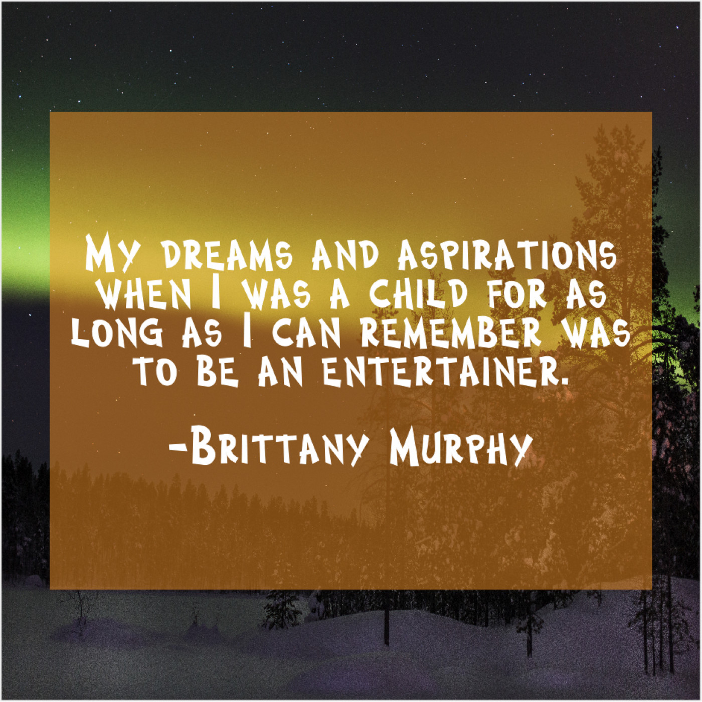 Brittany Murphy Brittany Murphy – My dreams and aspirations when… January 21, 2019 admin “My dreams and aspirations when I was a child for as long as I can remember was to be an entertainer.”-Brittany Murphy