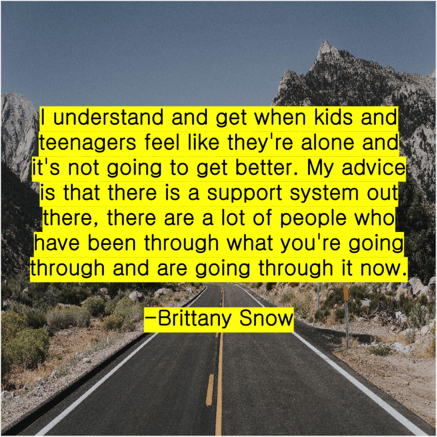 “I understand and get when kids and teenagers feel like they’re alone and it’s not going to get better. My advice is that there is a support system out there, there are a lot of people who have been through what you’re going through and are going through it now.”