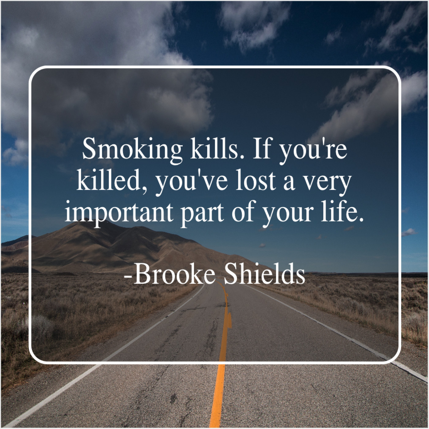 Brooke Shields Brooke Shields – Smoking kills. If you’re killed… June 25, 2019 admin “Smoking kills. If you’re killed, you’ve lost a very important part of your life.”-Brooke Shields