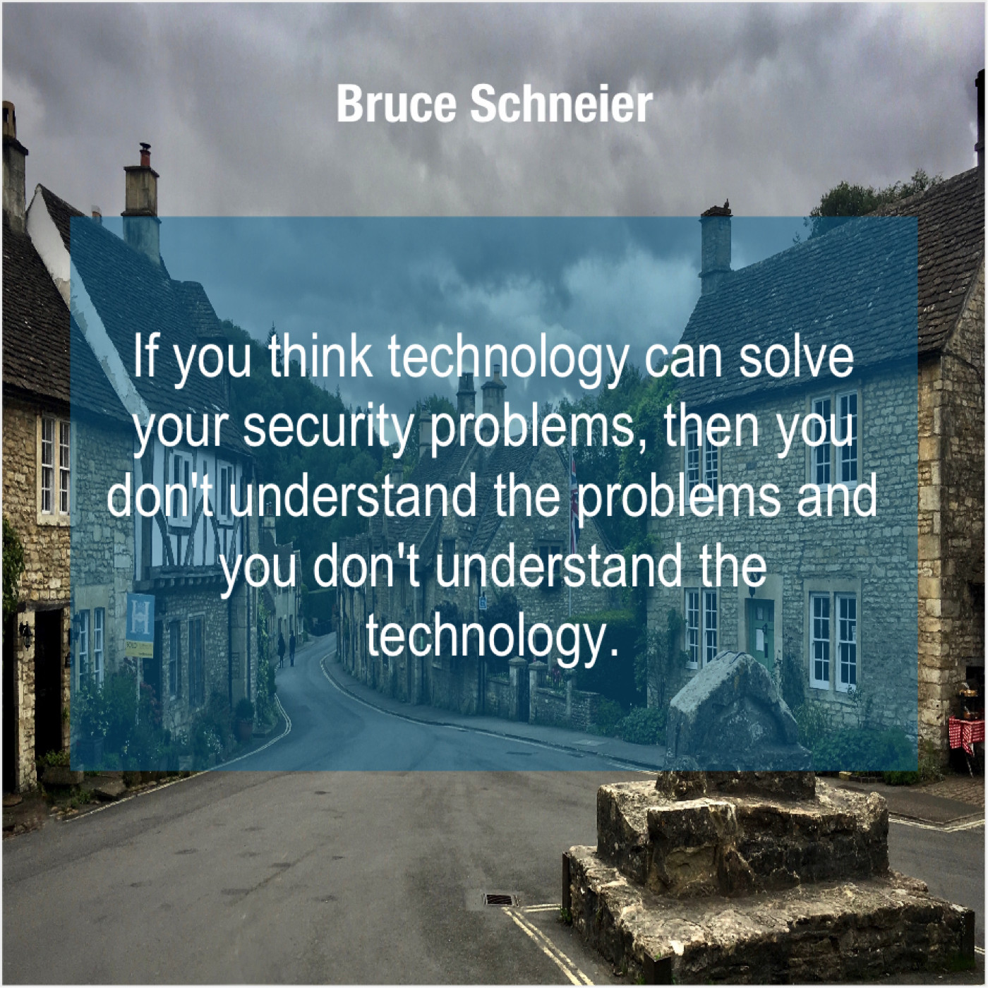 Bruce Schneier Bruce Schneier – If you think technology can… July 27, 2019 admin “If you think technology can solve your security problems, then you don’t understand the problems and you don’t understand the technology.”-Bruce Schneier