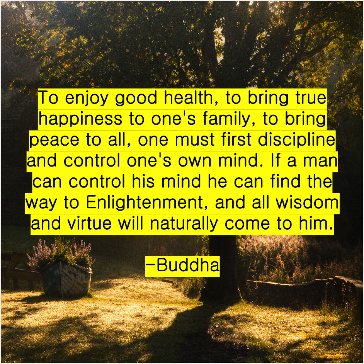“To enjoy good health, to bring true happiness to one’s family, to bring peace to all, one must first discipline and control one’s own mind. If a man can control his mind he can find the way to Enlightenment, and all wisdom and virtue will naturally come to him.”