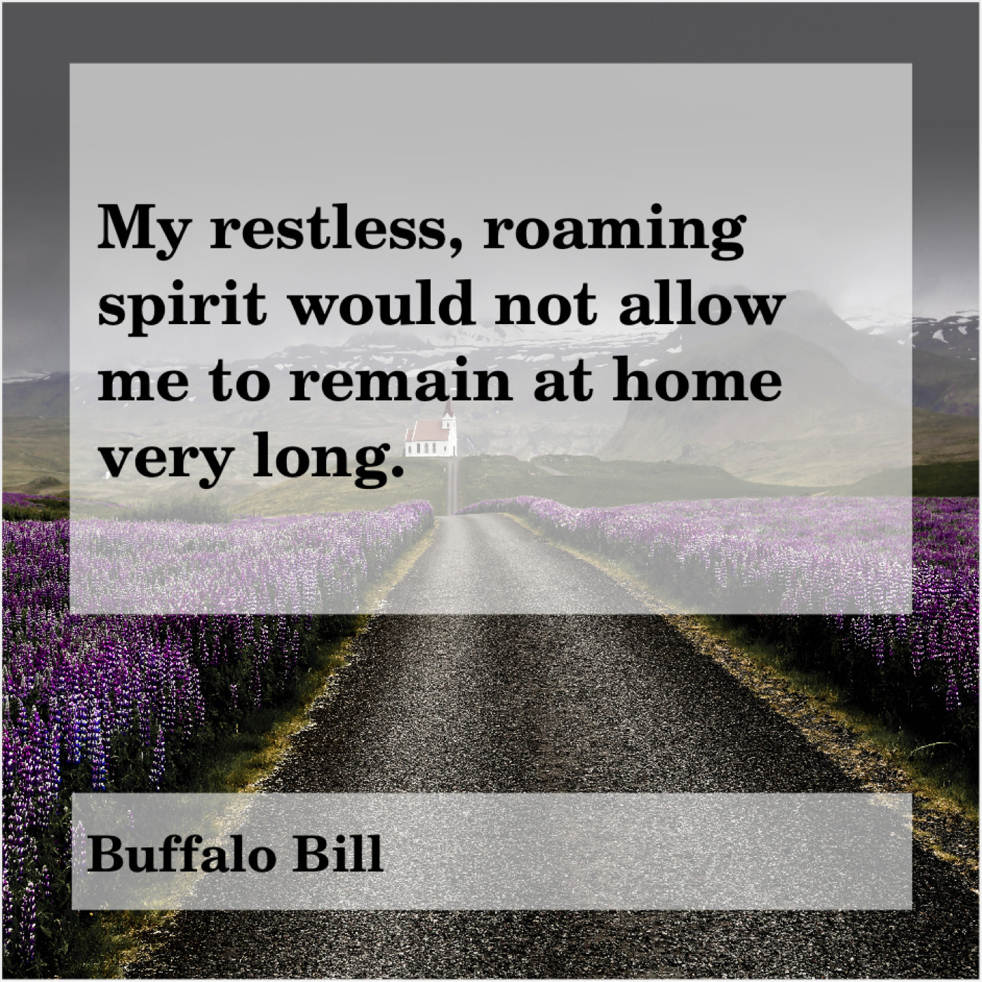 Buffalo Bill Buffalo Bill – My restless, roaming spirit would… February 8, 2019 admin “My restless, roaming spirit would not allow me to remain at home very long.”-Buffalo Bill