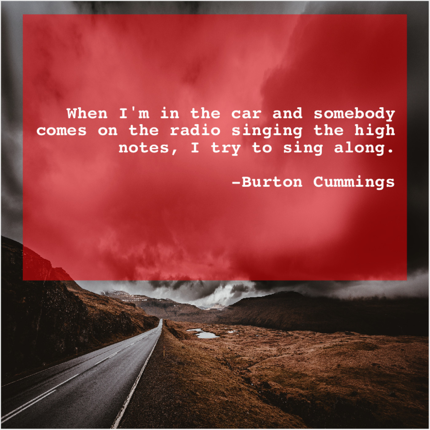 Burton Cummings Burton Cummings – When I’m in the car… May 27, 2019 admin “When I’m in the car and somebody comes on the radio singing the high notes, I try to sing along.”-Burton Cummings
