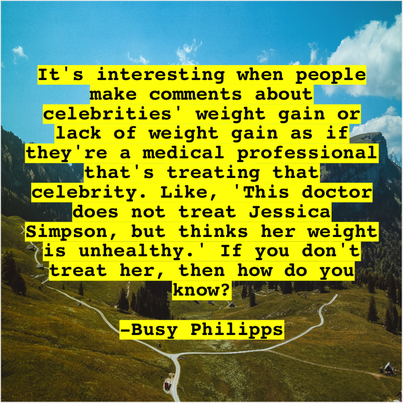 “It’s interesting when people make comments about celebrities’ weight gain or lack of weight gain as if they’re a medical professional that’s treating that celebrity. Like, ‘This doctor does not treat Jessica Simpson, but thinks her weight is unhealthy.’ If you don’t treat her, then how do you know?”