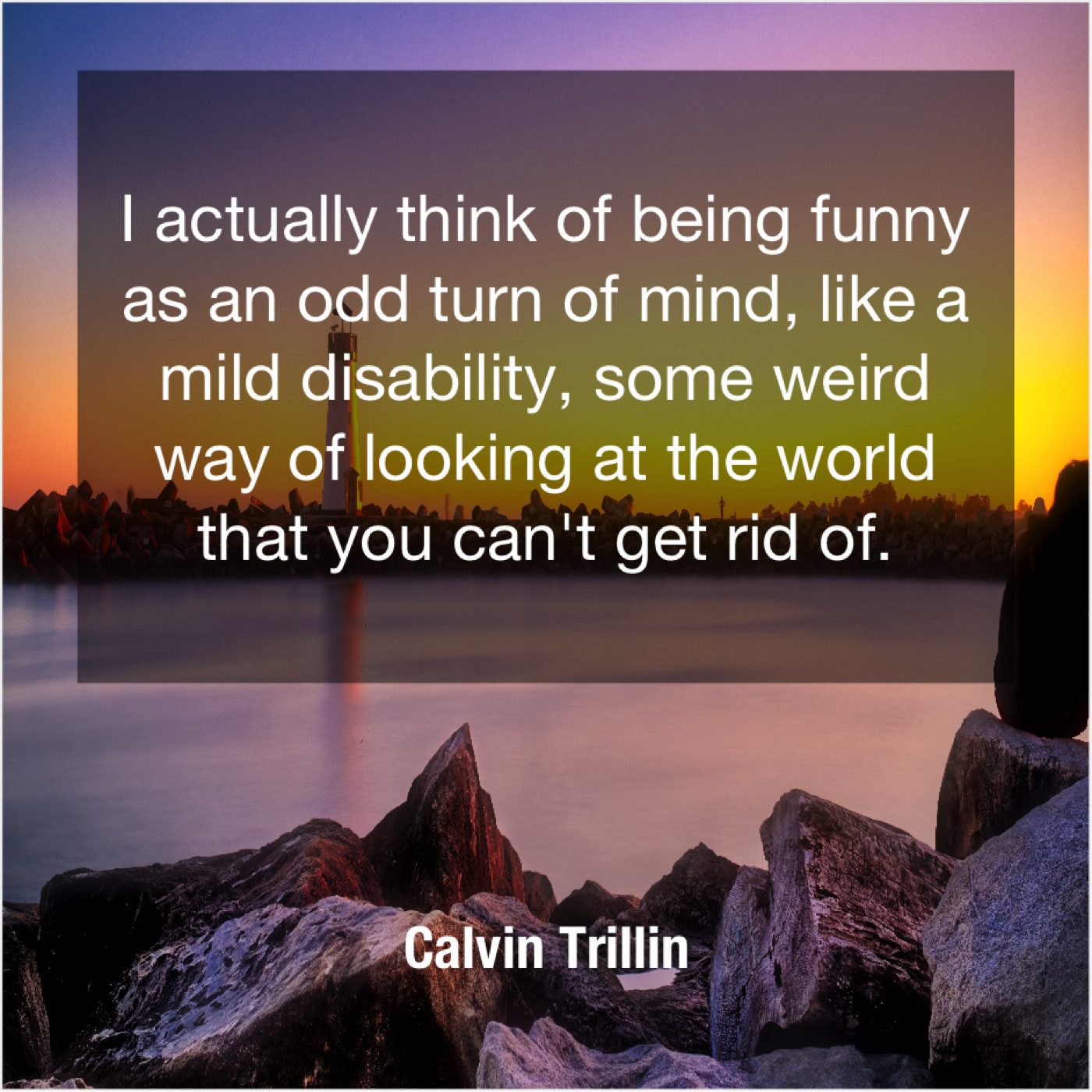 Calvin Trillin Calvin Trillin – I actually think of being… June 28, 2019 admin “I actually think of being funny as an odd turn of mind, like a mild disability, some weird way of looking at the world that you can’t get rid of.”-Calvin Trillin