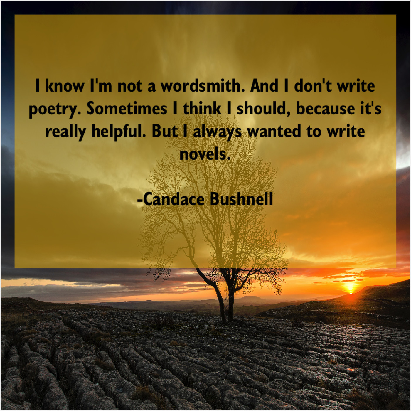 Candace Bushnell Candace Bushnell – I know I’m not a… March 10, 2019 admin “I know I’m not a wordsmith. And I don’t write poetry. Sometimes I think I should, because it’s really helpful. But I always wanted to write novels.”-Candace Bushnell