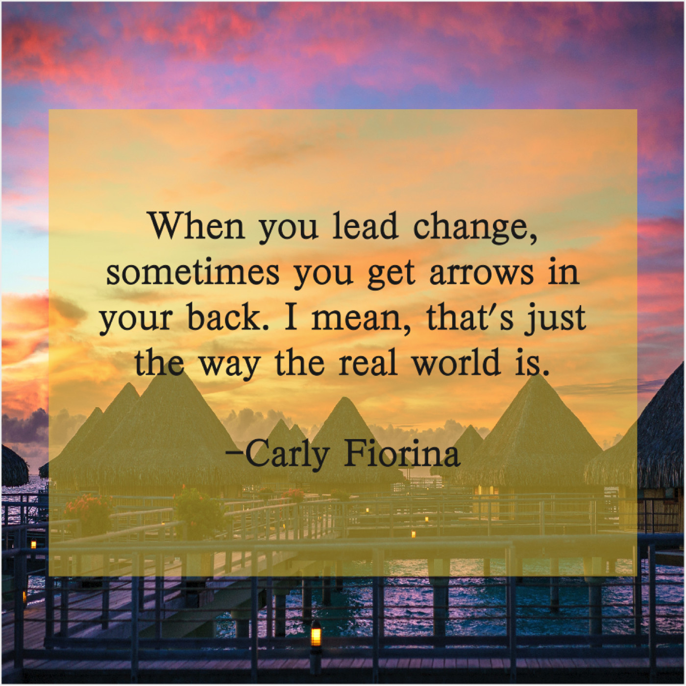 Carly Fiorina Carly Fiorina – When you lead change, sometimes… March 18, 2019 admin “When you lead change, sometimes you get arrows in your back. I mean, that’s just the way the real world is.”-Carly Fiorina