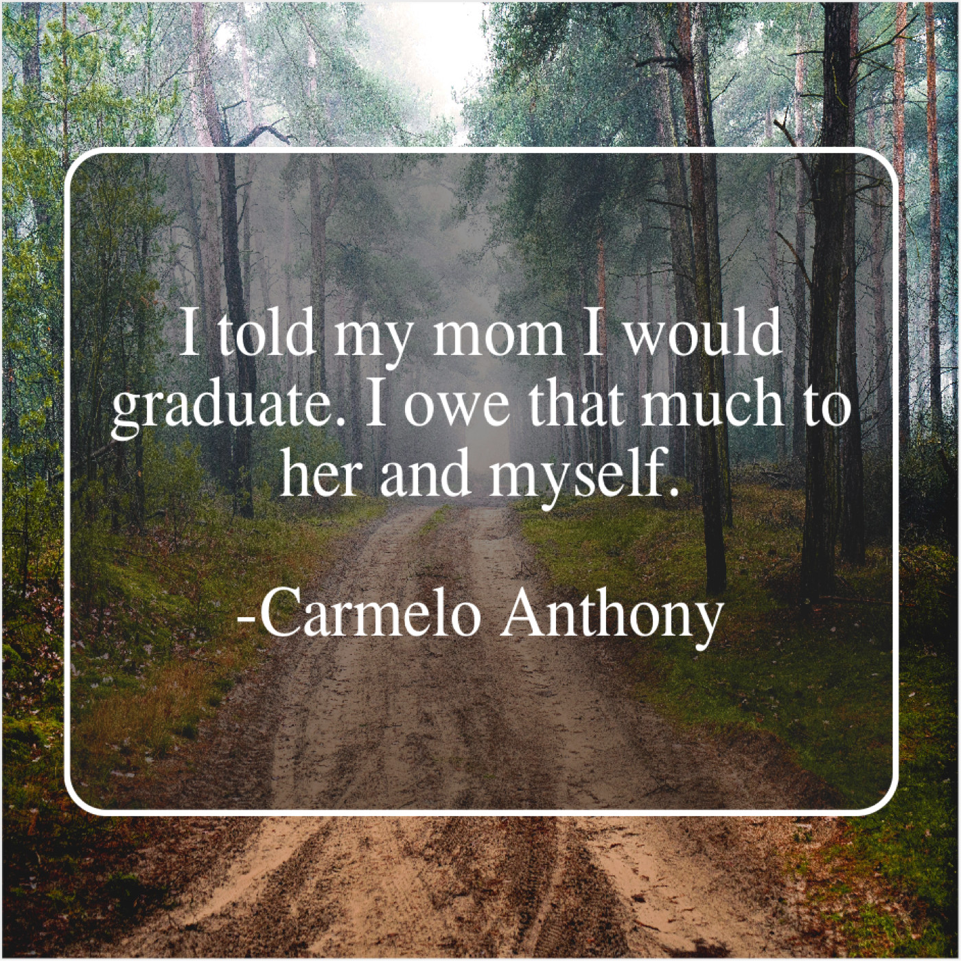 Carmelo Anthony Carmelo Anthony – I told my mom I… April 27, 2019 admin “I told my mom I would graduate. I owe that much to her and myself.”-Carmelo Anthony
