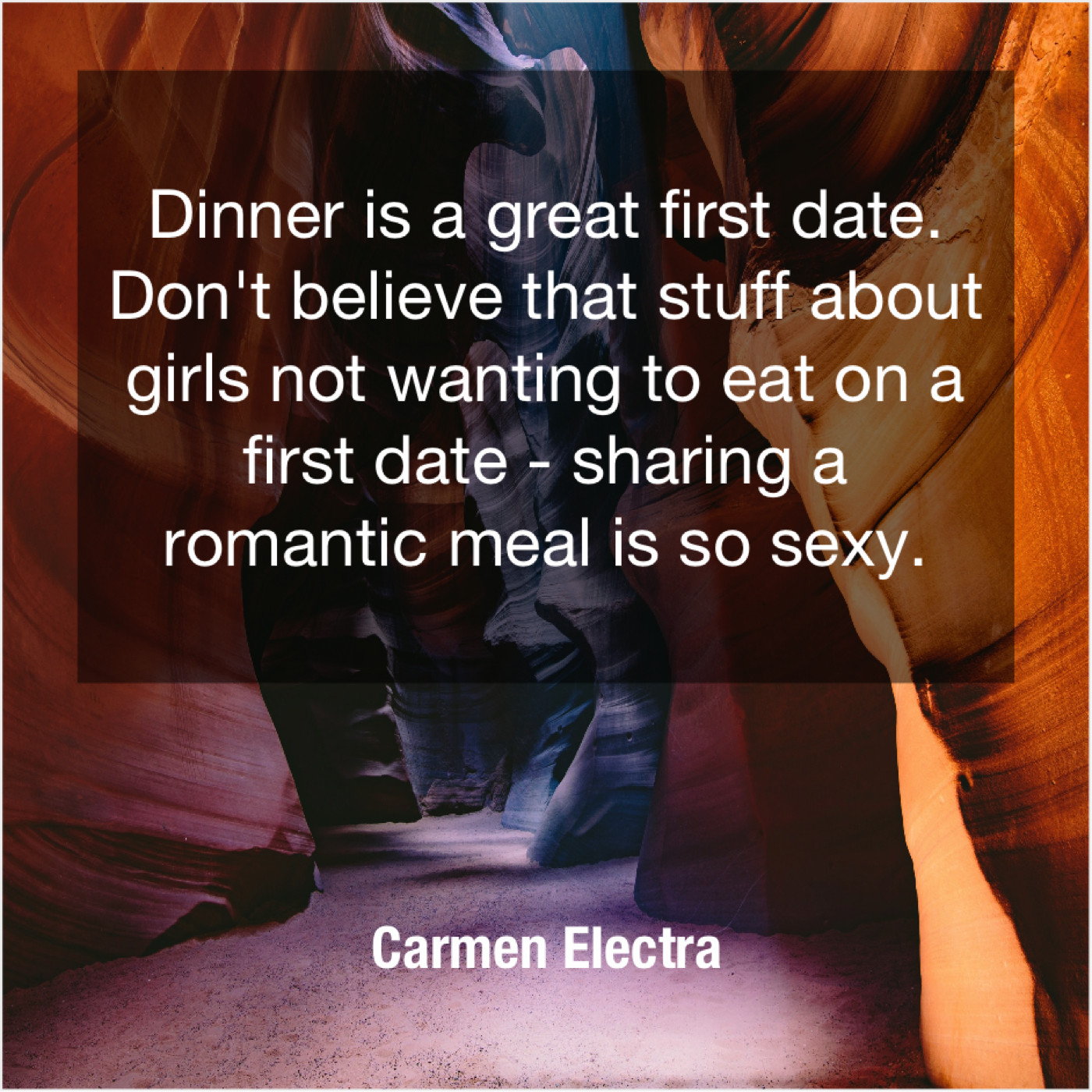 Carmen Electra Carmen Electra – Dinner is a great first… October 19, 2019 admin “Dinner is a great first date. Don’t believe that stuff about girls not wanting to eat on a first date – sharing a romantic meal is so sexy.”-Carmen Electra