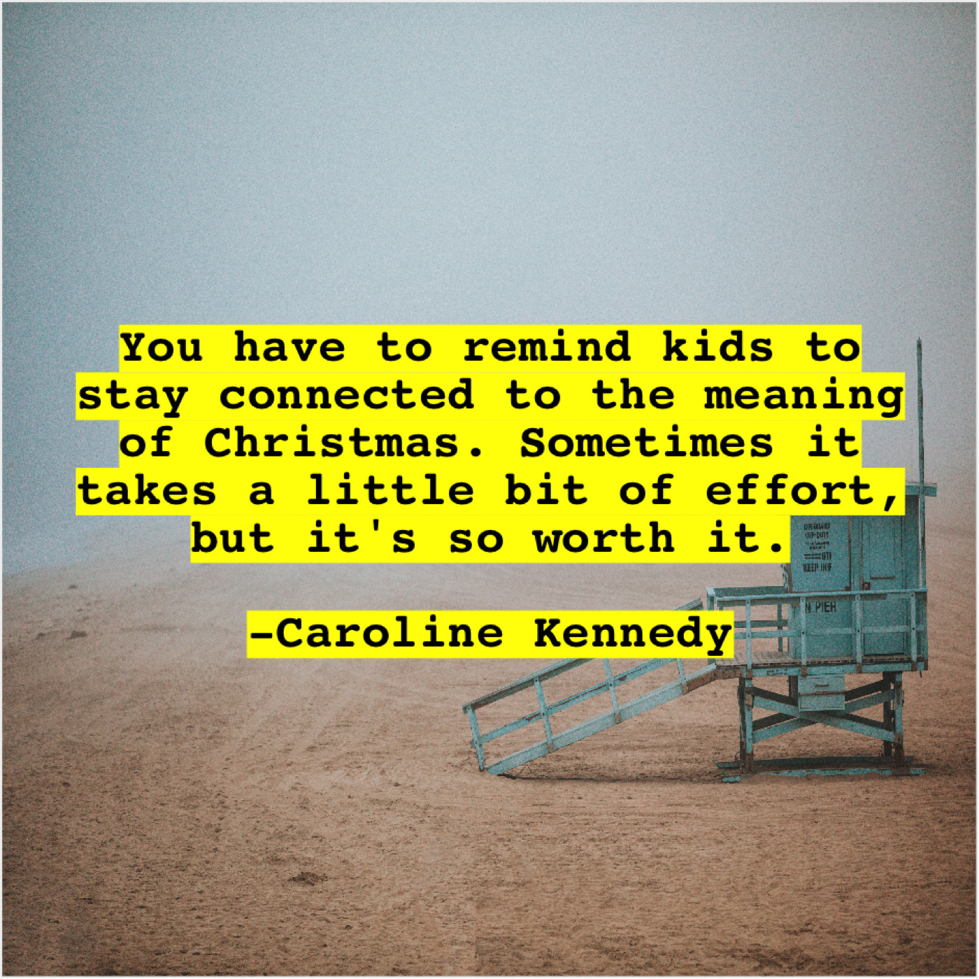 Caroline Kennedy Caroline Kennedy – You have to remind kids… February 8, 2019 admin “You have to remind kids to stay connected to the meaning of Christmas. Sometimes it takes a little bit of effort, but it’s so worth it.”-Caroline Kennedy