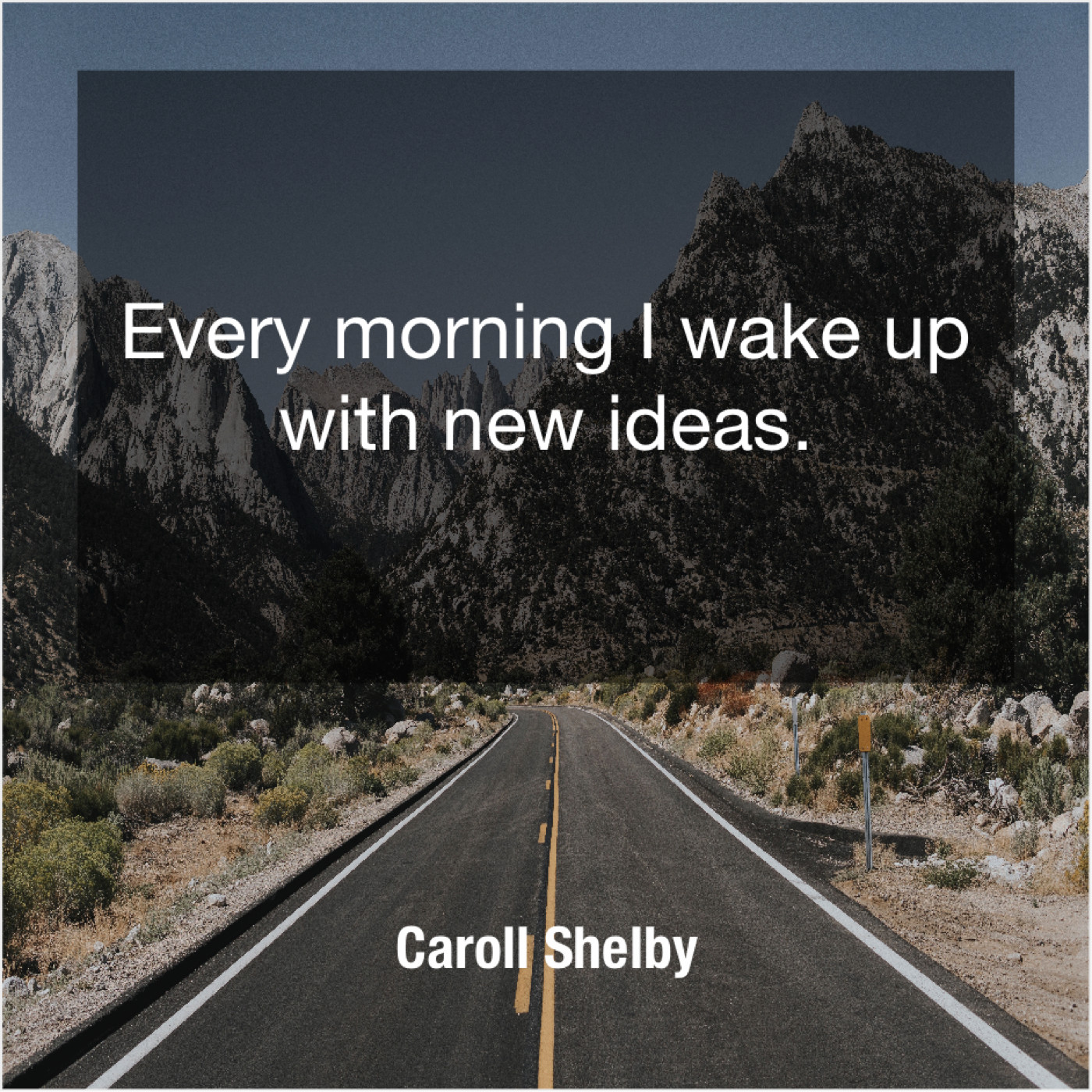 Caroll Shelby Caroll Shelby – Every morning I wake up… June 13, 2019 admin “Every morning I wake up with new ideas.”-Caroll Shelby