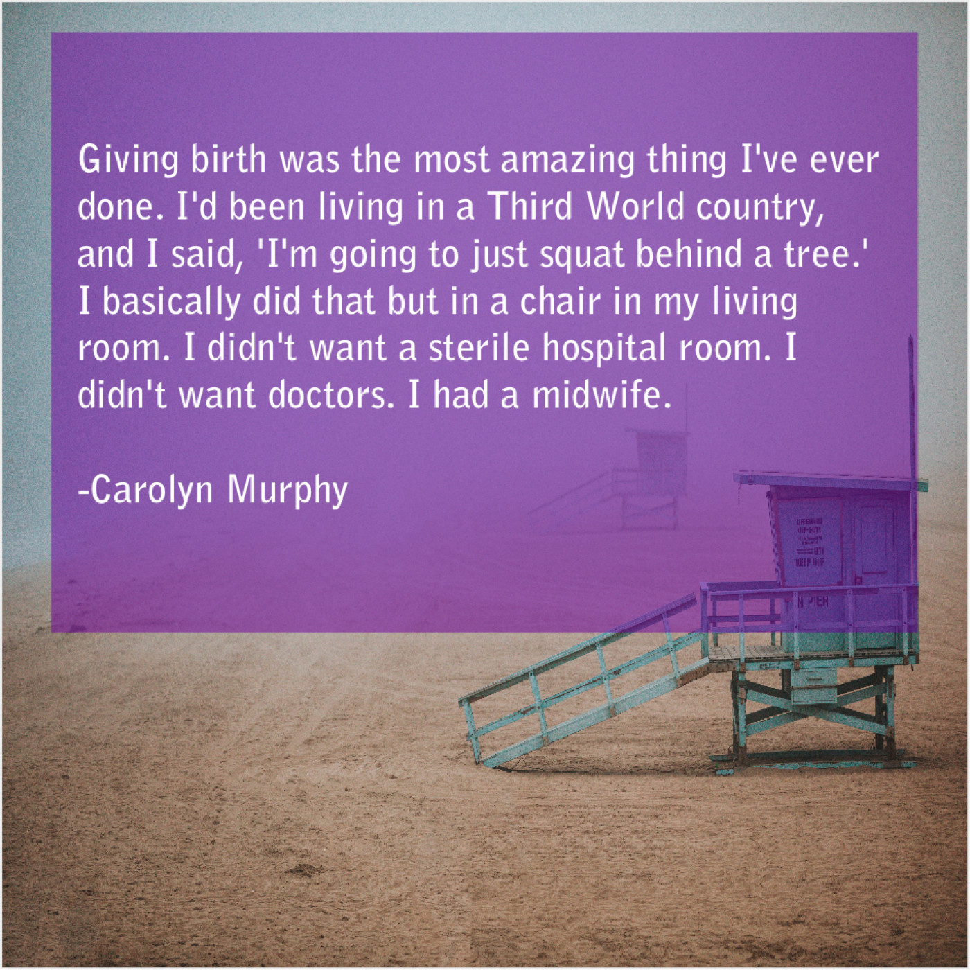 “Giving birth was the most amazing thing I’ve ever done. I’d been living in a Third World country, and I said, ‘I’m going to just squat behind a tree.’ I basically did that but in a chair in my living room. I didn’t want a sterile hospital room. I didn’t want doctors. I had a midwife.”