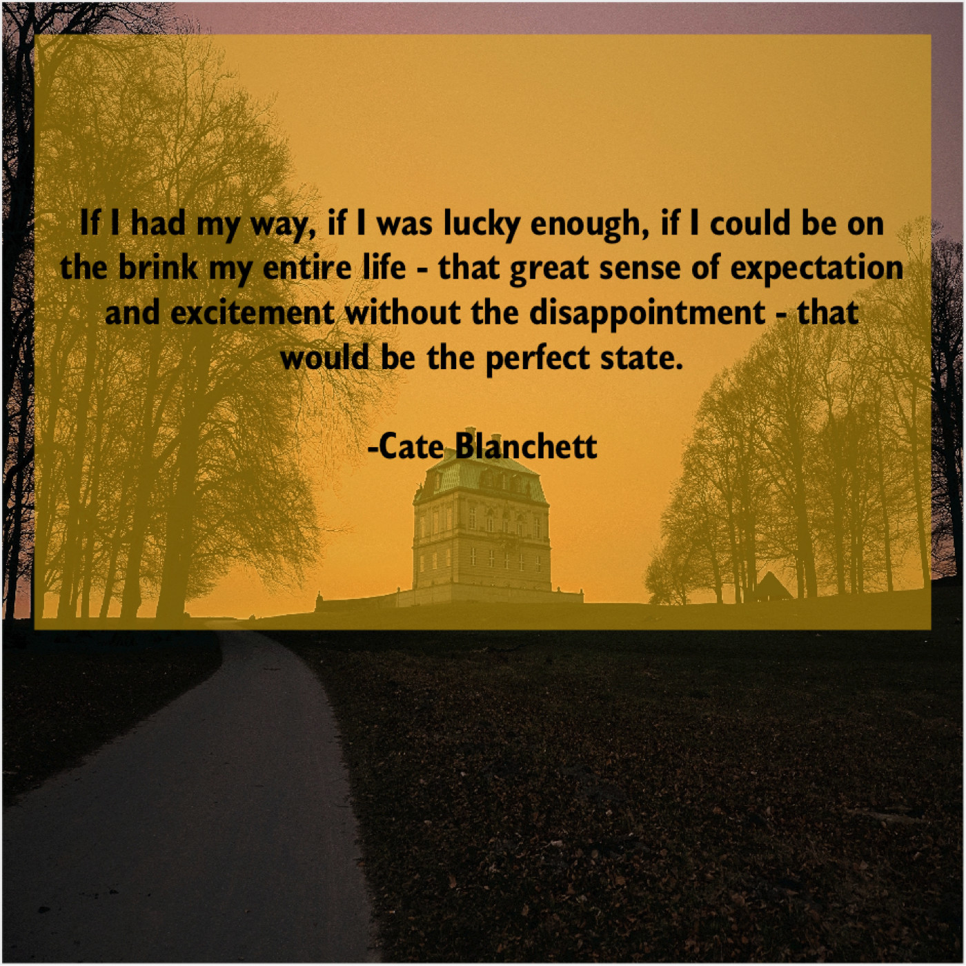 Cate Blanchett Cate Blanchett – If I had my way… April 29, 2019 admin “If I had my way, if I was lucky enough, if I could be on the brink my entire life – that great sense of expectation and excitement without the disappointment – that would be the perfect state.”-Cate Blanchett