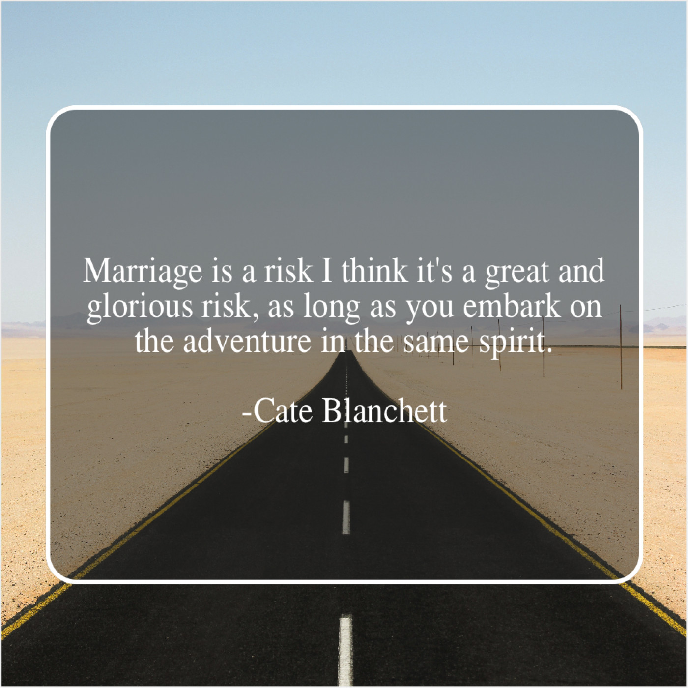 Cate Blanchett Cate Blanchett – Marriage is a risk I… August 24, 2019 admin “Marriage is a risk I think it’s a great and glorious risk, as long as you embark on the adventure in the same spirit.”-Cate Blanchett