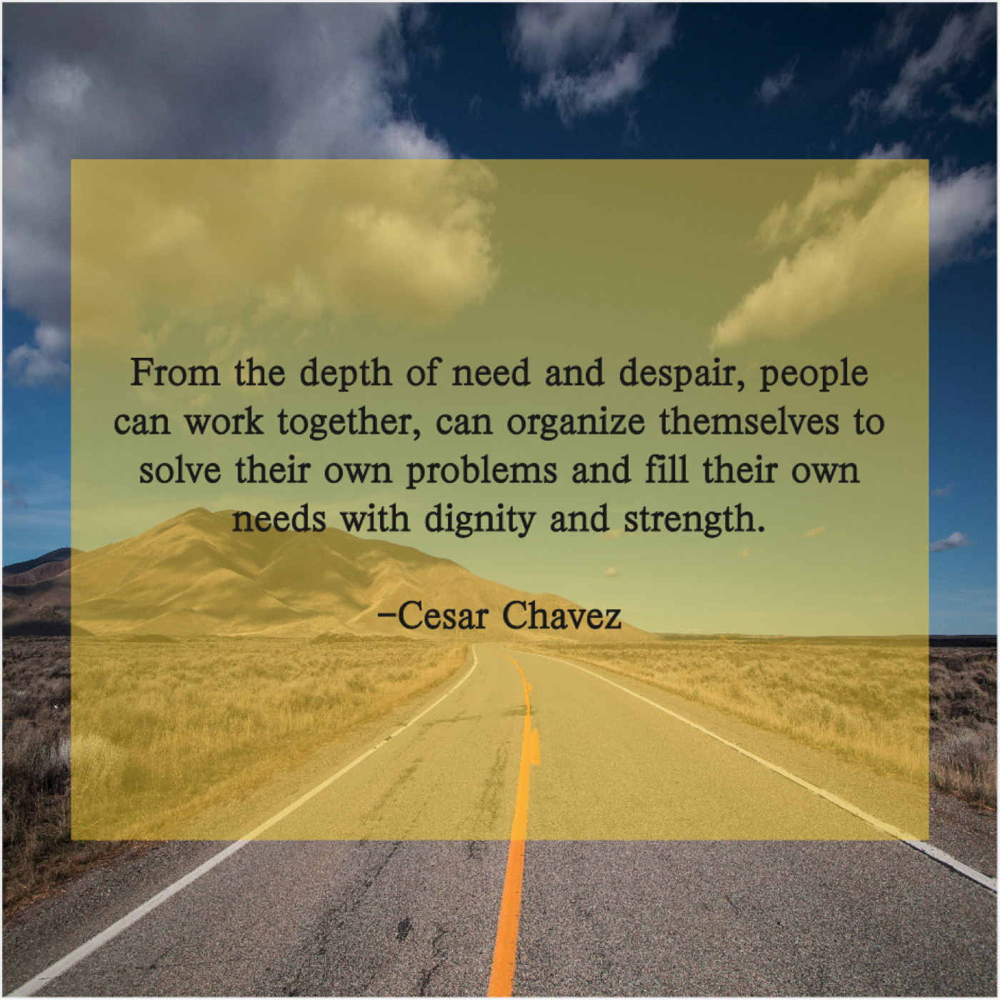 Cesar Chavez Cesar Chavez – From the depth of need… August 3, 2019 admin “From the depth of need and despair, people can work together, can organize themselves to solve their own problems and fill their own needs with dignity and strength.”-Cesar Chavez