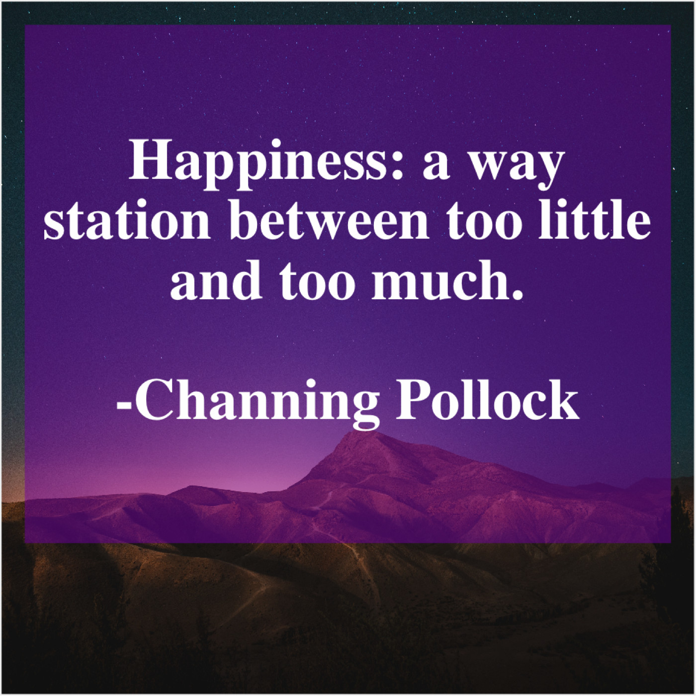 Channing Pollock Channing Pollock – Happiness: a way station between… September 24, 2019 admin “Happiness: a way station between too little and too much.”-Channing Pollock