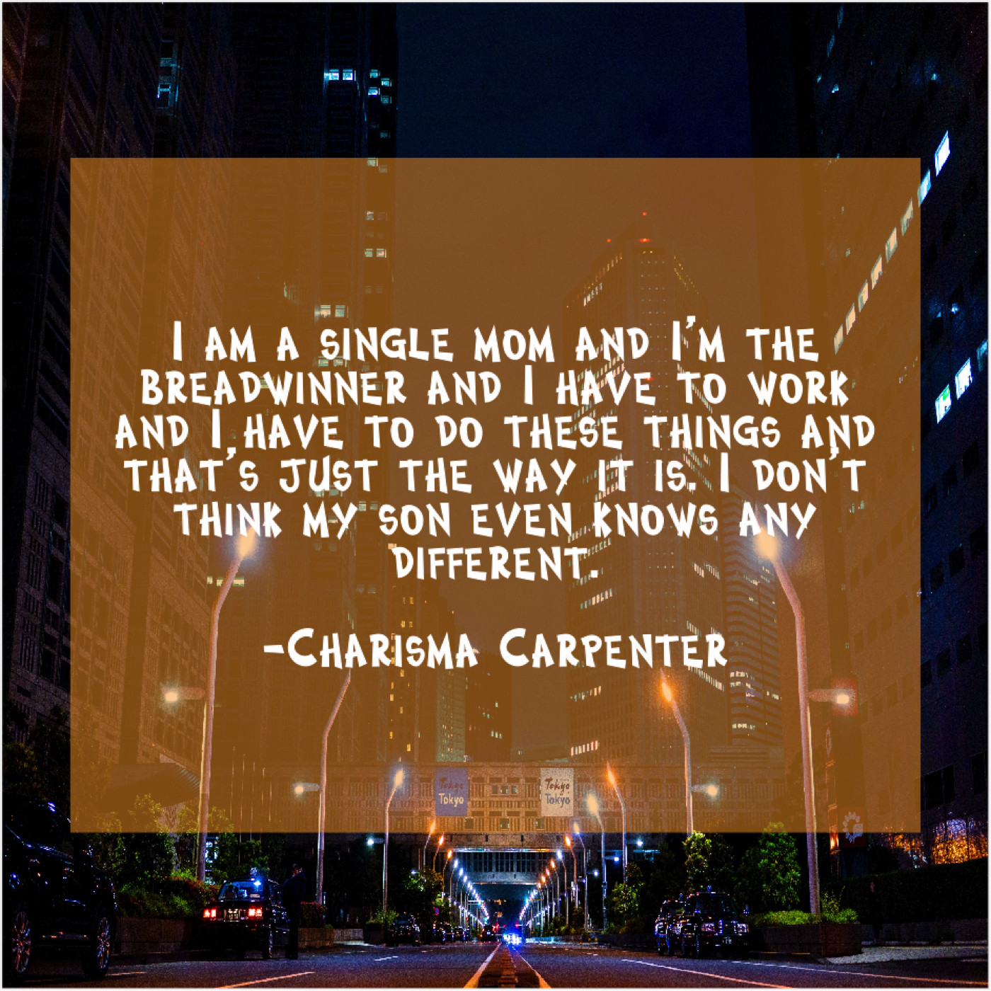 Charisma Carpenter Charisma Carpenter – I am a single mom… May 19, 2019 admin “I am a single mom and I’m the breadwinner and I have to work and I have to do these things and that’s just the way it is. I don’t think my son even knows any different.”-Charisma Carpenter