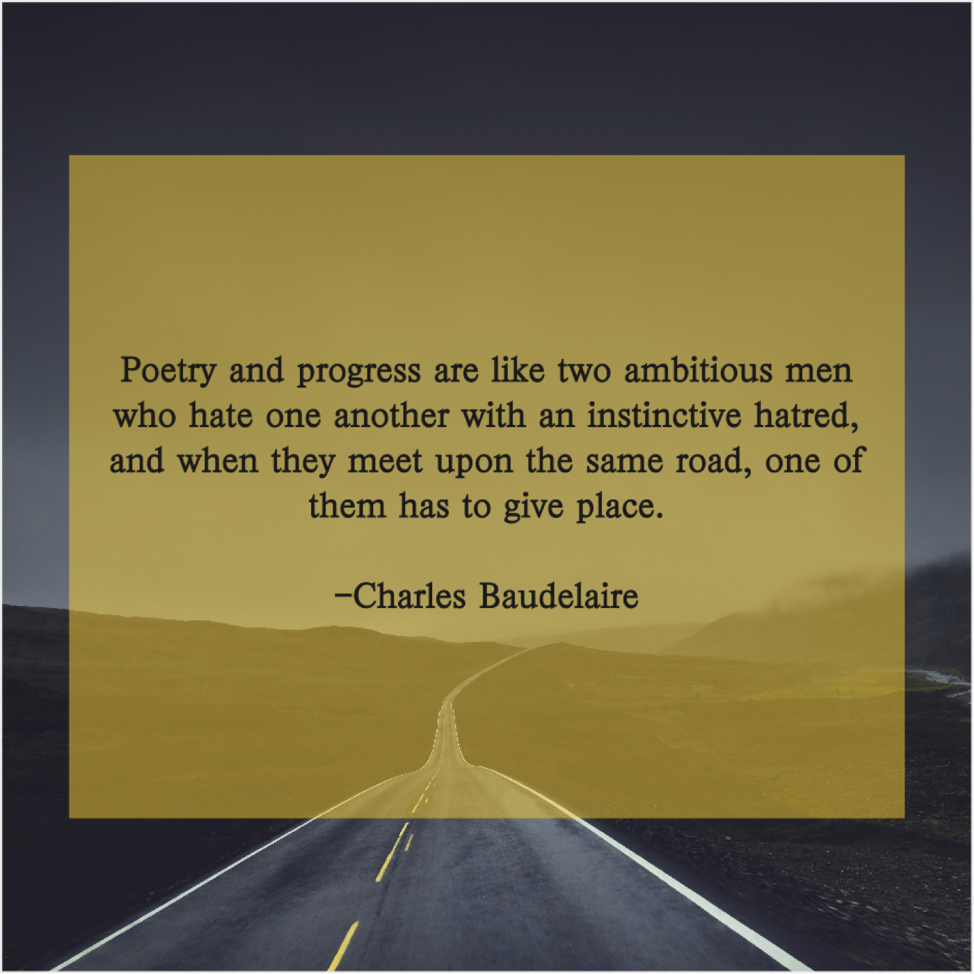 Charles Baudelaire Charles Baudelaire – Poetry and progress are like… February 26, 2019 admin “Poetry and progress are like two ambitious men who hate one another with an instinctive hatred, and when they meet upon the same road, one of them has to give place.”-Charles Baudelaire