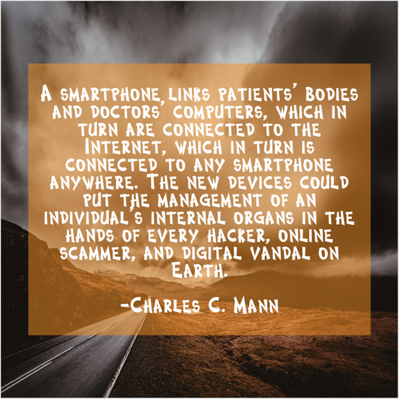 “A smartphone links patients’ bodies and doctors’ computers, which in turn are connected to the Internet, which in turn is connected to any smartphone anywhere. The new devices could put the management of an individual’s internal organs in the hands of every hacker, online scammer, and digital vandal on Earth.”