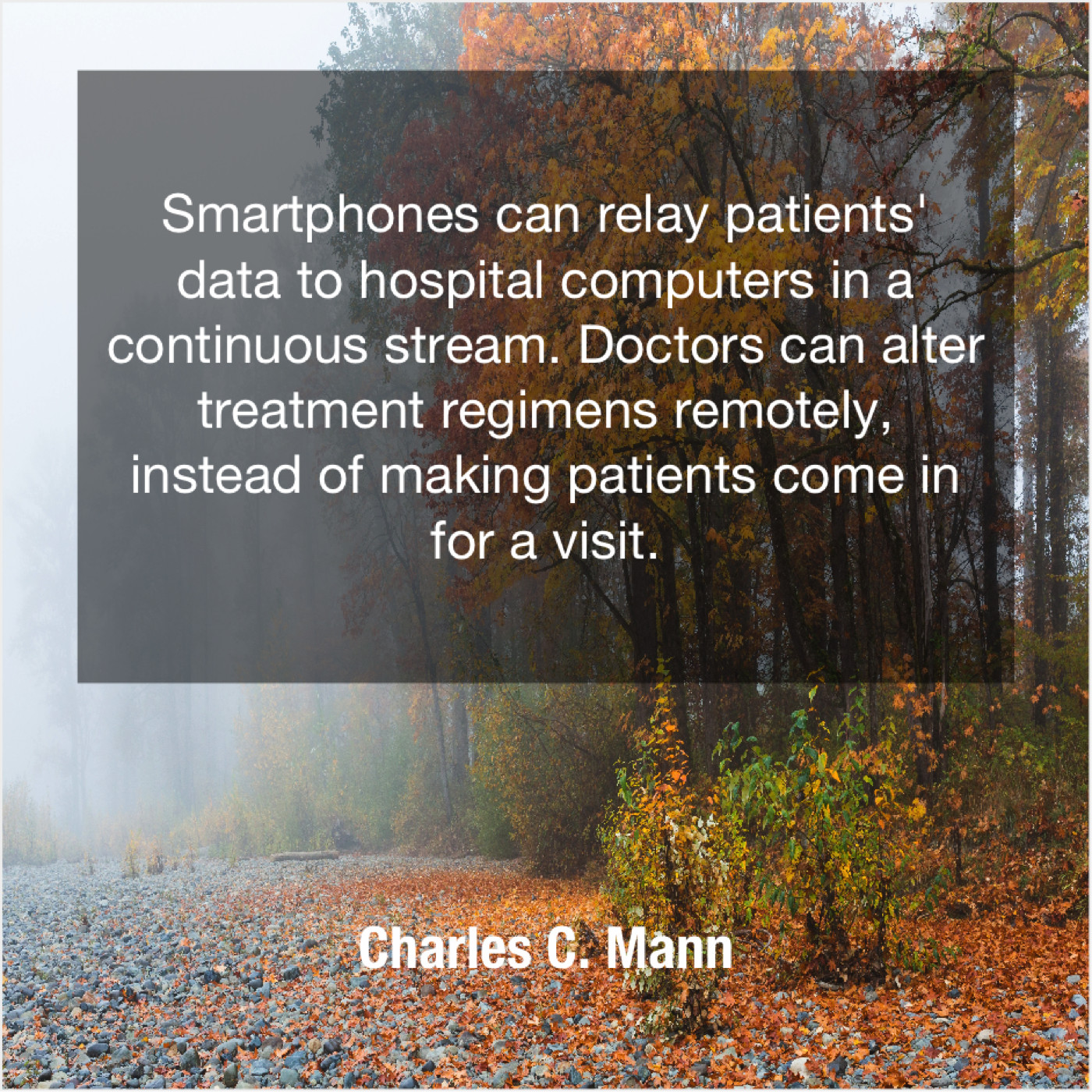“Smartphones can relay patients’ data to hospital computers in a continuous stream. Doctors can alter treatment regimens remotely, instead of making patients come in for a visit.”