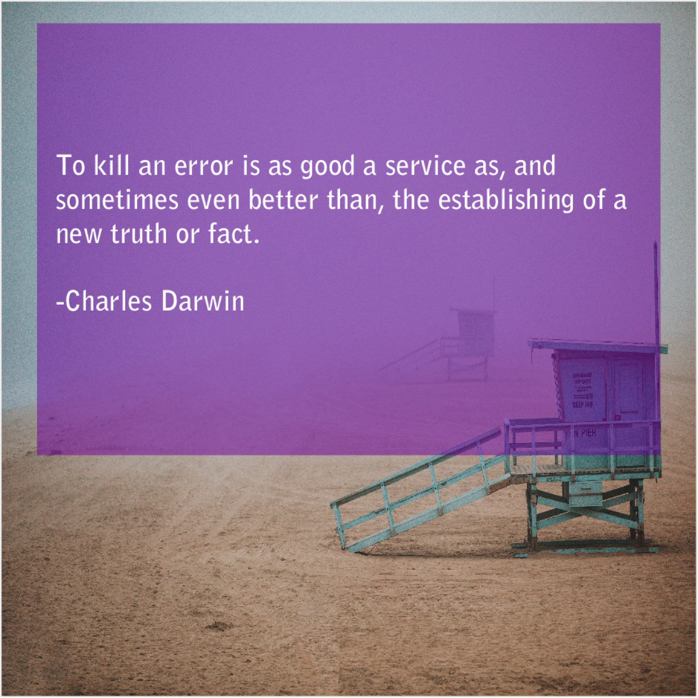 Charles Darwin Charles Darwin – To kill an error is… September 23, 2019 admin “To kill an error is as good a service as, and sometimes even better than, the establishing of a new truth or fact.”-Charles Darwin