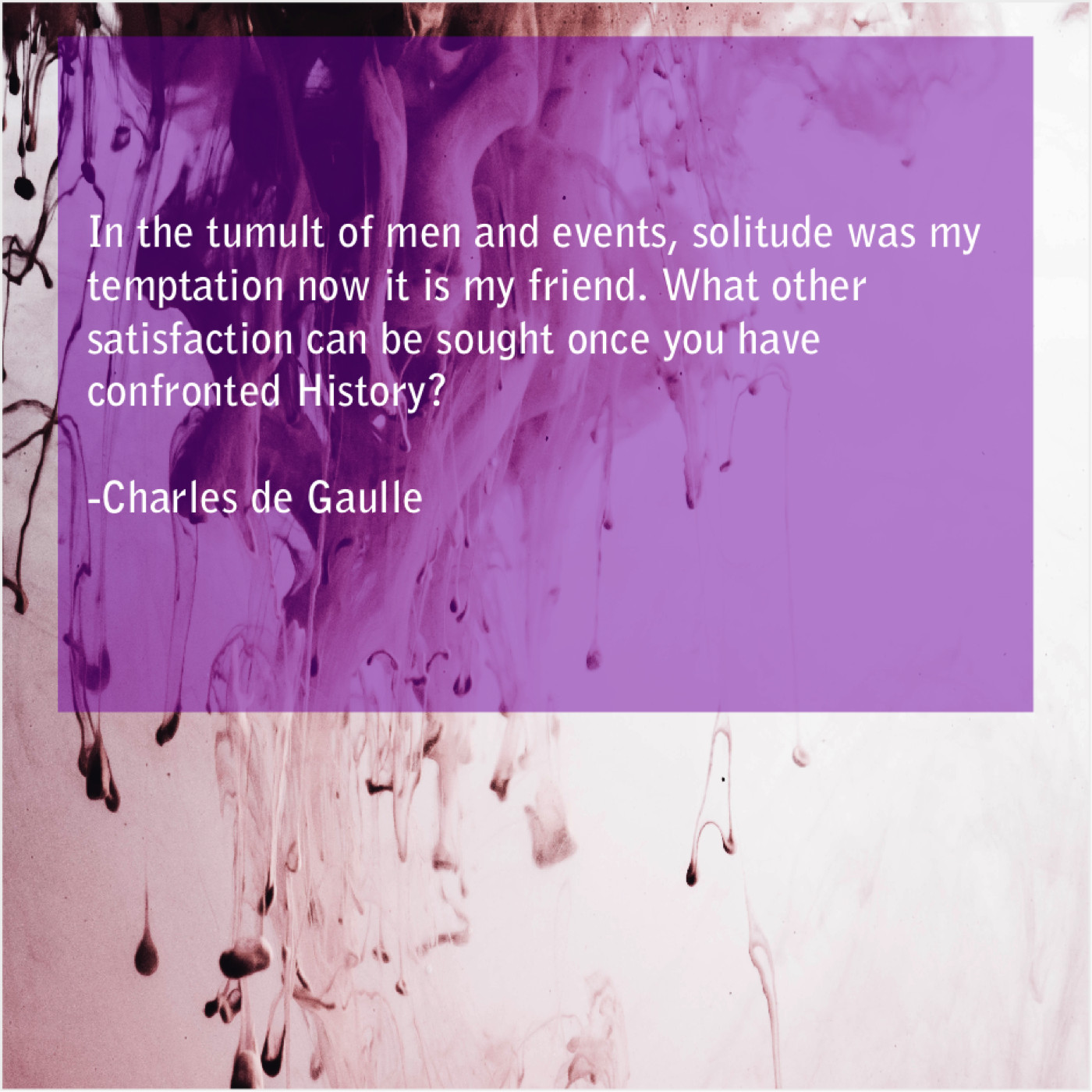 Charles de Gaulle Charles de Gaulle – In the tumult of men… October 8, 2019 admin “In the tumult of men and events, solitude was my temptation now it is my friend. What other satisfaction can be sought once you have confronted History?”-Charles de Gaulle