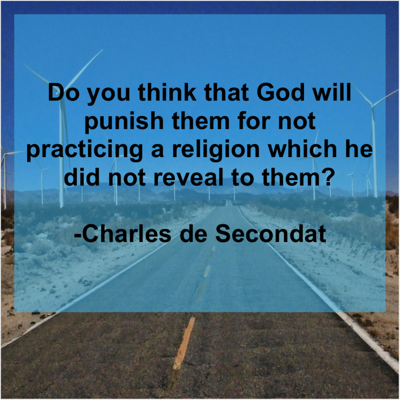 Charles de Secondat Charles de Secondat – Do you think that God… August 14, 2019 admin “Do you think that God will punish them for not practicing a religion which he did not reveal to them?”-Charles de Secondat