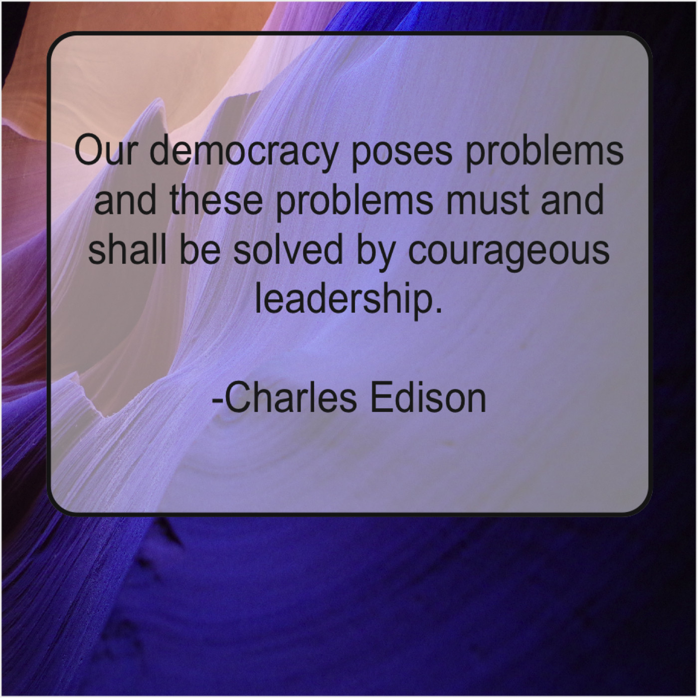 Charles Edison Charles Edison – Our democracy poses problems and… December 6, 2018 admin “Our democracy poses problems and these problems must and shall be solved by courageous leadership.”-Charles Edison