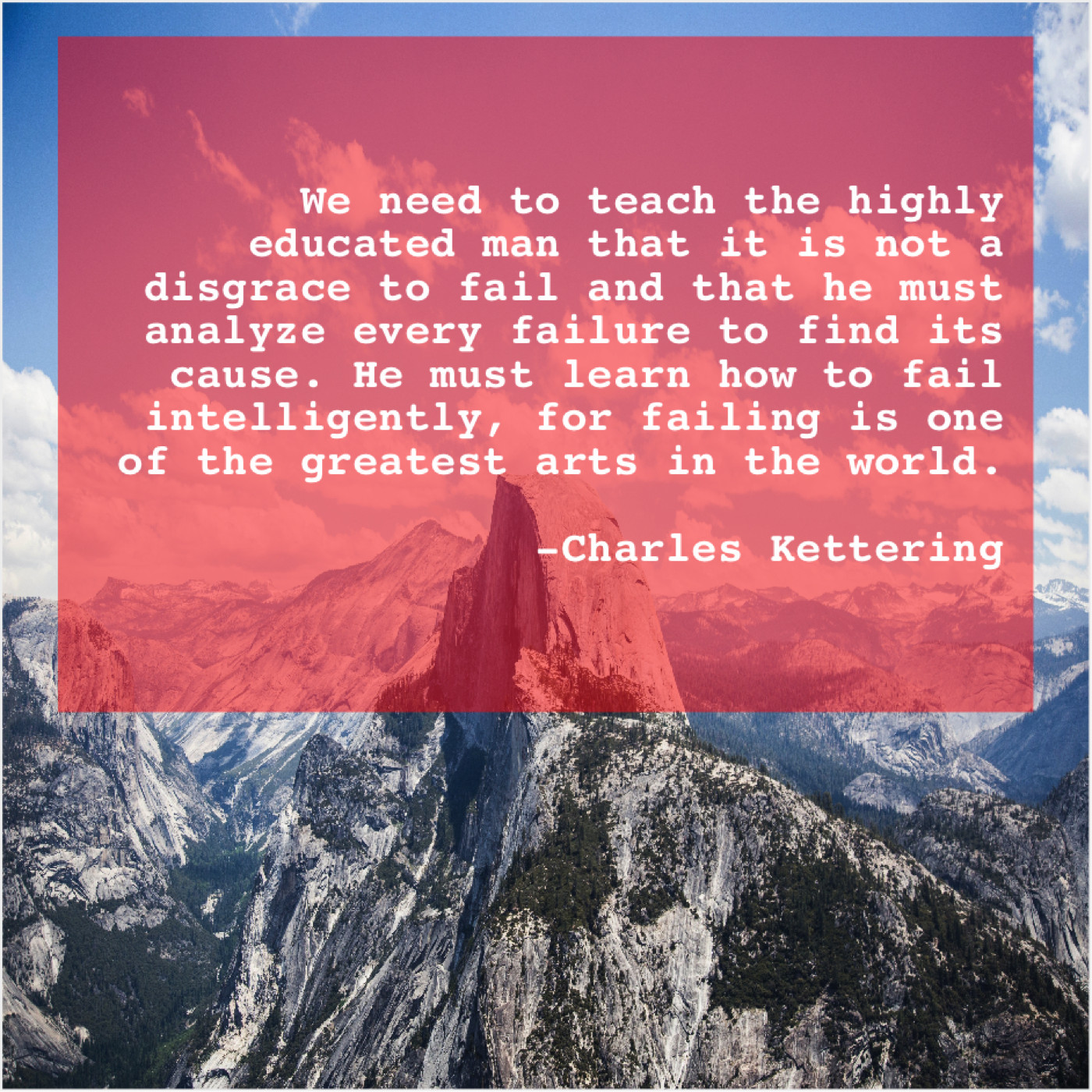 Charles Kettering Charles Kettering – We need to teach the… August 18, 2019 admin “We need to teach the highly educated man that it is not a disgrace to fail and that he must analyze every failure to find its cause. He must learn how to fail intelligently, for failing is one of the greatest arts in the world.”-Charles Kettering