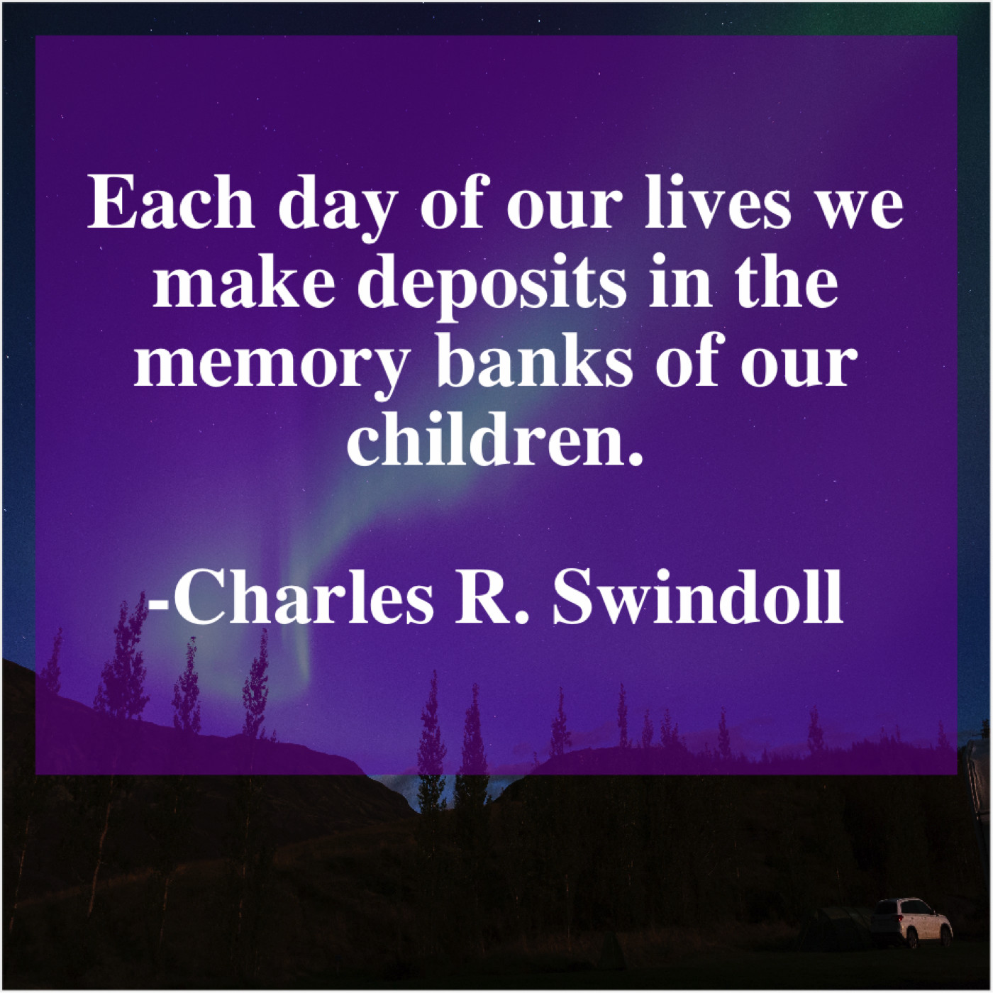 Charles R. Swindoll Charles R. Swindoll – Each day of our lives… November 11, 2018 admin “Each day of our lives we make deposits in the memory banks of our children.”-Charles R. Swindoll