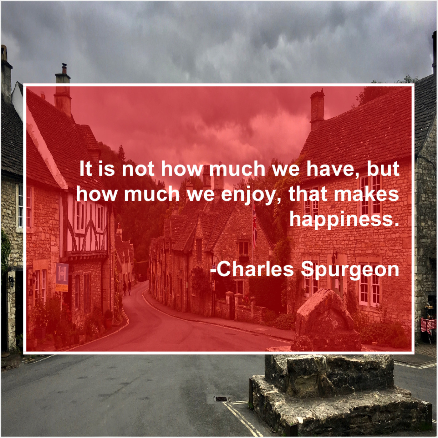 Charles Spurgeon Charles Spurgeon – It is not how much… September 1, 2019 admin “It is not how much we have, but how much we enjoy, that makes happiness.”-Charles Spurgeon