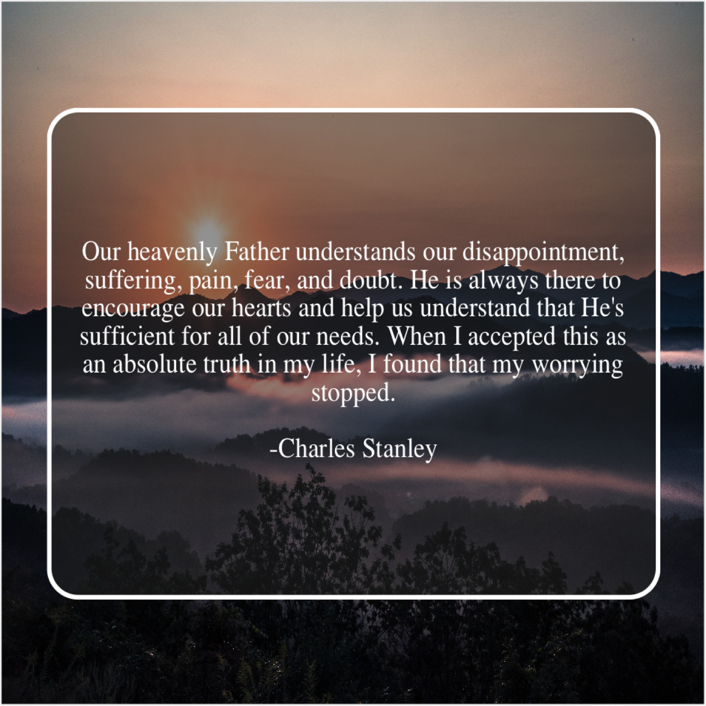 “Our heavenly Father understands our disappointment, suffering, pain, fear, and doubt. He is always there to encourage our hearts and help us understand that He’s sufficient for all of our needs. When I accepted this as an absolute truth in my life, I found that my worrying stopped.”