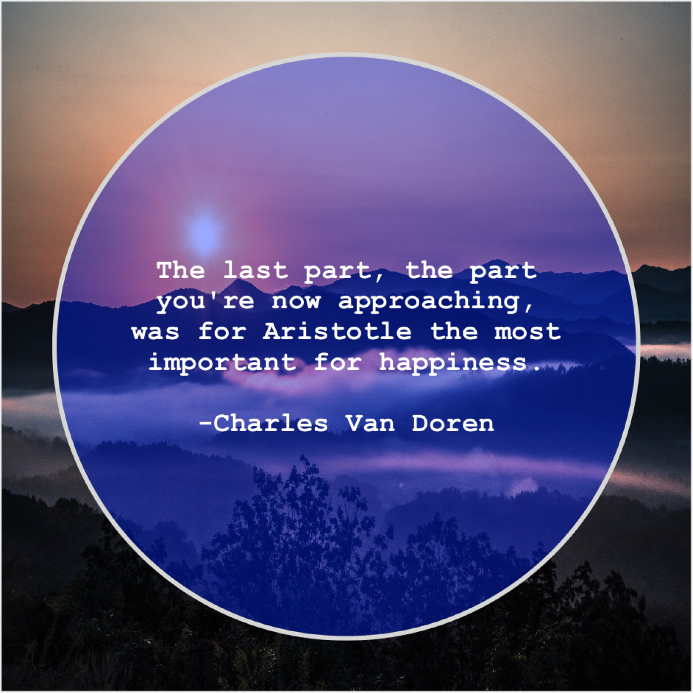 “The last part, the part you’re now approaching, was for Aristotle the most important for happiness.”