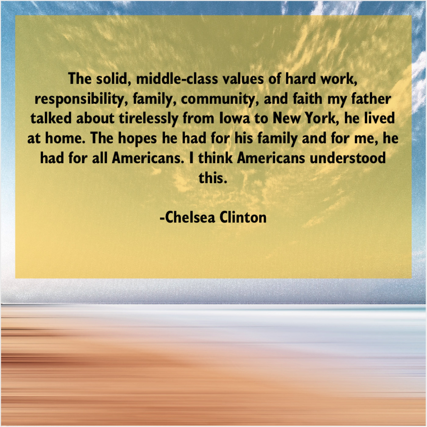 “The solid, middle-class values of hard work, responsibility, family, community, and faith my father talked about tirelessly from Iowa to New York, he lived at home. The hopes he had for his family and for me, he had for all Americans. I think Americans understood this.”